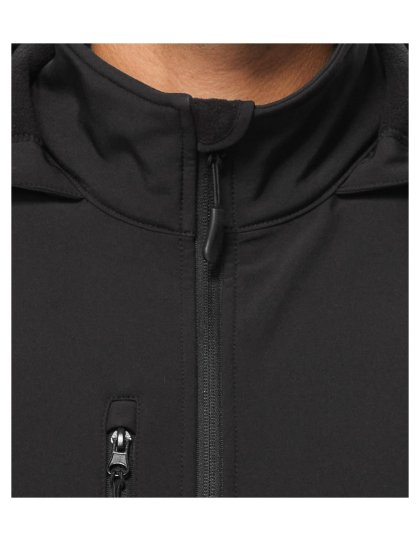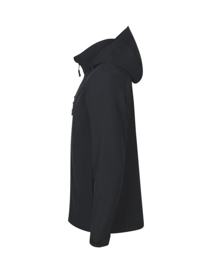 bez etikety - připraveno na rebranding, 2vrstvý softshell, rovný střih s bočními díly, celopropínací reverzní spirálový zip s krytkou brady, kapuce a dolní lem na stažení elastickou šňůrkou, neutrální velikostní štítek v boční části průkrčníku, lemy rukávů nastavitelné suchým zipem, kapsy s reverzním spirálovým zipem, náprsní kapsa, tvarovaný a mírně prodloužený zadní díl, vnitřní fleece s antipilingovou úpravouDoplňkové parametry
